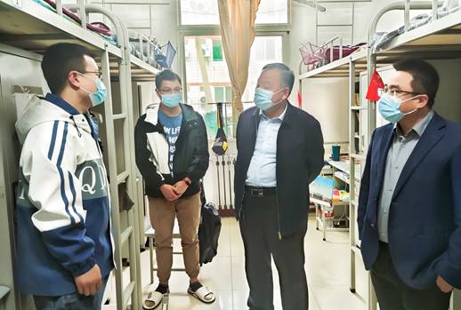 3月17日,院长陈建勋、院党委书记汪海年、副院长张久鹏、院党委副书记刘徐深入学生工作办公室和学生宿舍检查疫情防控工作。