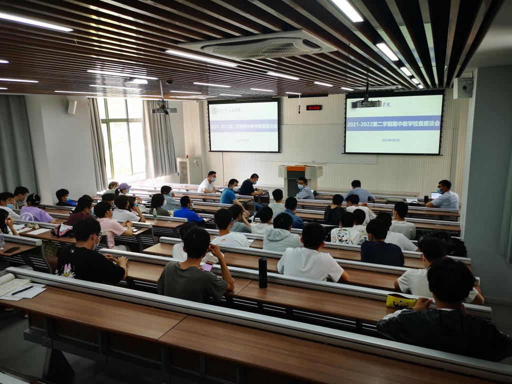 5月7日上午,学院组织开展了观摩教学和查听课活动。检查组对教师课堂讲授情况、学生出勤率、教学设备运行等进行了集中检查。检查结束后,教学督导、各系(中心)副主任开展听课活动,并在渭水校区修远教学楼3103教室召开了师生座谈会,2019、2020、2021级各班学生代表参加座谈会。