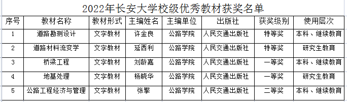 5部教材获特等奖2项、一等奖2项、二等奖1项,其中获得特等奖和一等奖的4部教材被推荐参评陕西高等教育优秀教材。