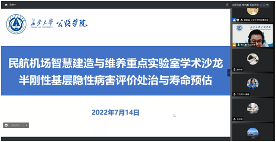 2022年7月14日下午,民航机场智能建造与维养重点实验室成功举办“半刚性基层隐性病害评价处治与寿命预估”线上学术沙龙。西北民航机场建设集团杨凯、圭目机器人有限公司钟新然、广西交通科学研究院王浩、伊莉讨论区