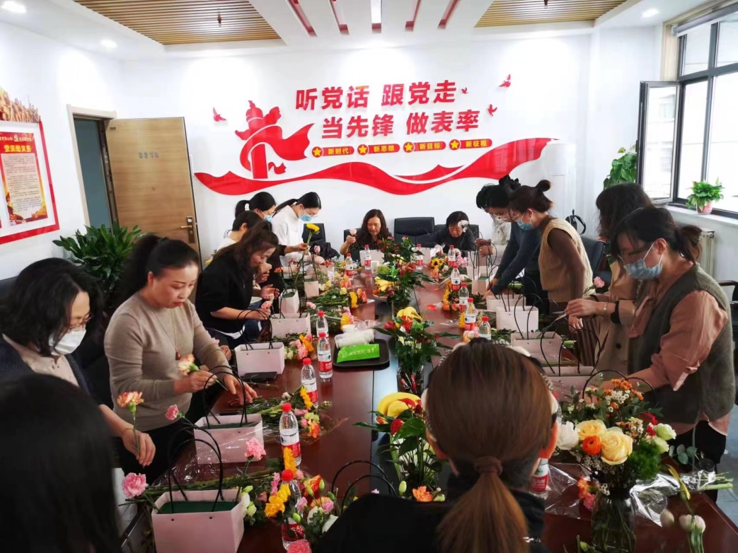 办公楼二层党建活动室举行了题为“花伴女神,心动三月”的插花活动。学院副院长、院工会主席马峰及学院20多名女教职员工参加了此次活动。