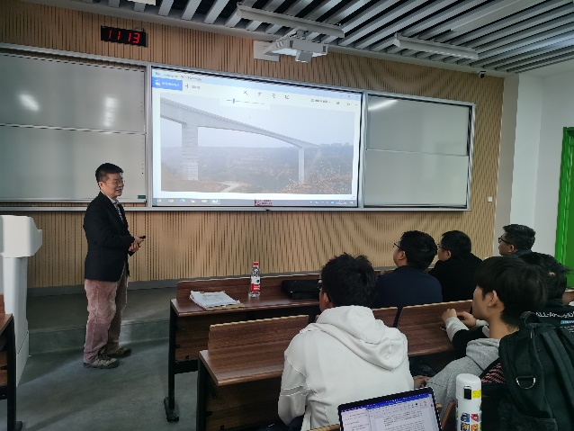 3月28日,郭强结合2022届桥梁方向全英文毕业设计指导工作,分析了校企联合毕业设计指导模式以及生产学习需求。高级工程师李超从毕业设计和工程设计异同、工程实践设计步骤等方面进行介绍,希望学生们在毕业设计阶段掌握企业所需技能,为之后职业发展做好准备。市政设计院总工寇楠从桥梁设计依据与规范、技术指标、桥梁布设原则、桥梁上部结构、桥梁下部结构及桥梁附属结构几个方面进行了详细讲解。