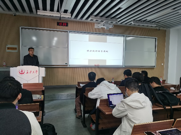 工程设计研究院有限公司副总经理兼市政设计院院长胡建荣、市政设计院副院长漆景星、交通设计院总工王苗定、副总工郭强及其团队成员做指导讲座,道路桥梁与渡河工程(国际工程班)和道路桥梁与渡河工程(中外合作办学)250余名学生参加讲座,国际教育中心副主任李鹏、国际教育中心教学秘书葛楠、桥梁方向指导教师高小育分别主持各方向的讲座。