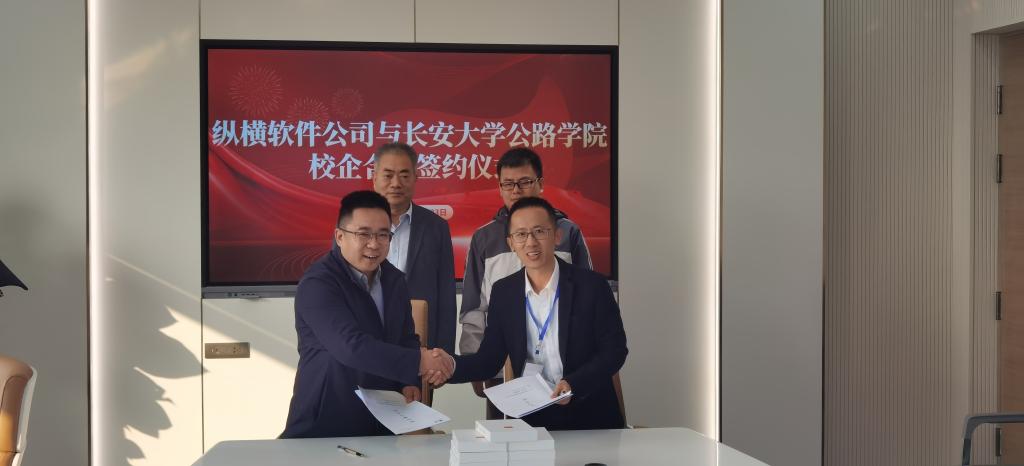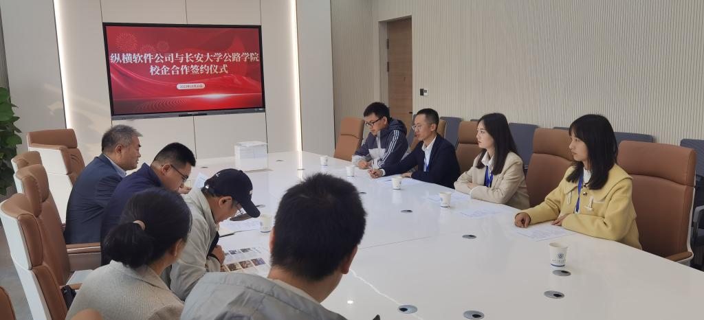 第一会议室举行。珠海纵横创新软件有限公司西北区域总经理苟彦刚、甘肃分公司经理李朋涛、服务总监许明月和培训师陈梅玉,学院副院长张久鹏及《公路施工组织与概预算》课程组教师出席签约仪式,课程组负责人张宜洛教授主持签约仪式。