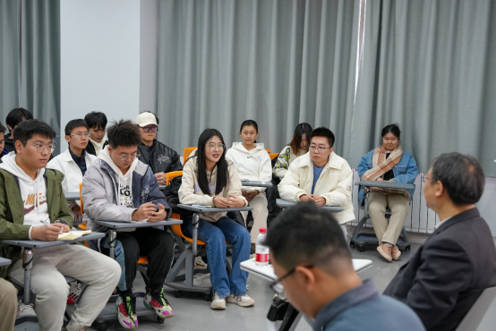 针对同学们在当前面临人生选择的关键时间节点上产生的一些困惑和问题,陈志坚与同学们进行了交流。他首先分享了毛泽东同志和习近平总书记对青年的殷切期望,接着回顾了习近平总书记对于青年的寄语和要求。他指出,从党的十八大到党的二十大,习近平总书记对于青年的要求一以贯之,“有理想,敢担当,能吃苦,肯奋斗”既是中国共产党对于青年人的希望,又与长大精神、长大校训的意蕴相贯通,是对于在座同学的号召,各位同学要有成长成才的规划、知行合一的担当、直面困难的勇气和持续奋斗的信念。