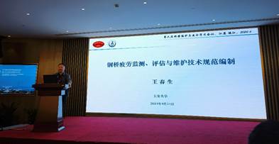 会议期间,王春生教授作题为“钢桥疲劳监测、评估与维护技术规范编制”的报告,系统介绍了团队编制的交通运输部行业标准《钢桥疲劳监测、评估与维护技术规范》的主要内容,得到了与会专家的一致好评和高度认可。