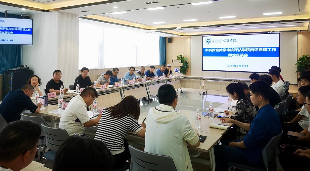 为全面推进新一轮本科教育教学审核评估迎评促建工作,5月11日中午,学院在弘毅大厦第三会议室召开本科教育教学审核评估学院自评自建工作师生座谈会。学院党委书记、副院长张久鹏,教学督导陈传德、各系(中心)副主任、教师代表、教务、学办相关人员以及学院各年级学生代表参加会议。会议由专业建设及教学主管张晔主持。
