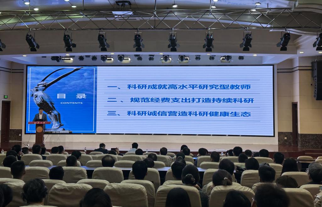 王亚琼首先致辞并作动员讲话。他从学校科研发展全局出发,深入分析了当前国家自然科学基金申报面临的新形势与新机遇,鼓励申报教师准确把握科学前沿,勇于挑战前沿科学问题,提前精心准备,力争在2026年度基金申报中取得优异成绩。他强调科研经费规范、高效使用对于科研事业可持续发展的重要性,倡导严谨求实的科学精神,营造科研健康生态。