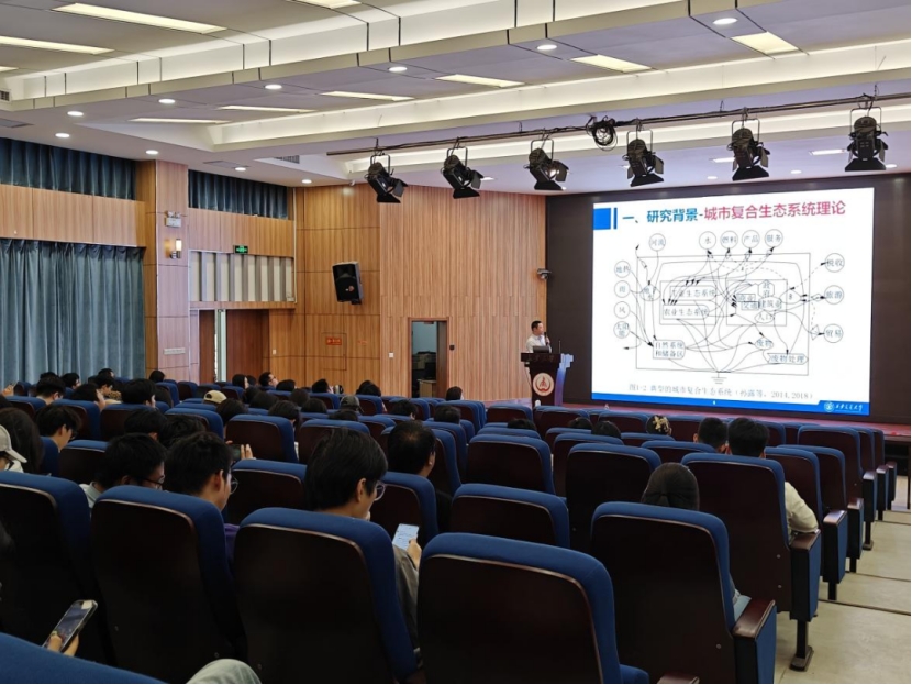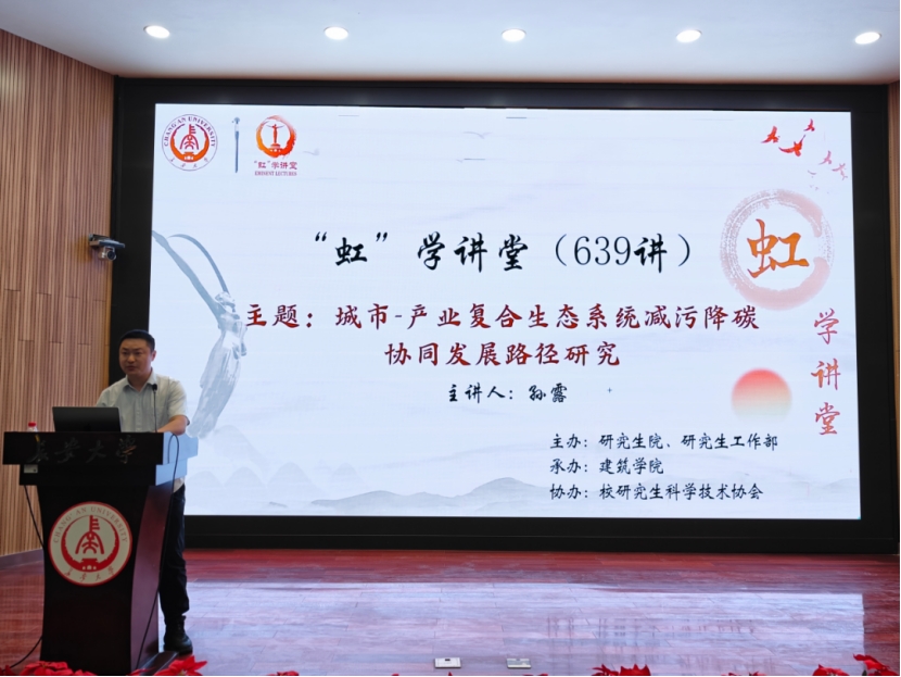 On the afternoon of May 12, the 639th "Hong" Academic Lecture, organized by the Graduate School and the Graduate Work Department, hosted by the School of Architecture, and co-organized by the University Graduate Science and Technology Association, was successfully held at the Bosheng Lecture Hall of the East Campus of the South Campus. Professor Sun Lu from Xi'an Jiaotong University delivered a report titled "Research on Synergistic Development Paths for Pollution Reduction and Carbon Mitigation in Urban-Industrial Composite Ecosystem." The lecture was chaired by Associate Professor Wu Yan from the School of Architecture, with a total of 100 faculty members and students from related colleges in attendance.
