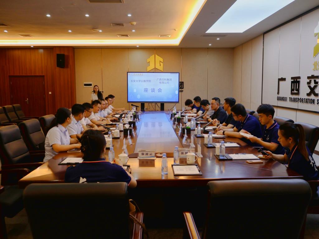 在公路交通领域久负盛名,学院科研创新、人才培养和社会服务水平在业内享誉度很高,校企双方合作前景广阔,希望学院下一步继续加深同广西交投的合作,打造校企合作的典范。刘佳介绍了公司的发展现状、业务拓展、未来发展战略以及就下一步校企在技术创新、学生培养、人才培训等方面提出建议。贾历波代表学院感谢广西交投的热情接待,并简要介绍了学院的发展历史及现状,重点就提高毕业生就业质量、加强校企协同育人、深化校企在科研成果转化和企业人才培训方面的合作同公司进行了深入的交流。