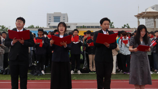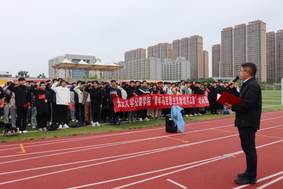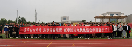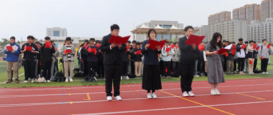 于北校区风雨操场举行五四青年节升旗仪式。学院全体辅导员、本科生党员、二级党校学员、青马班学员和部分团支部参与仪式。本次活动由学院本科生党建工作负责人刘亦澜主持。