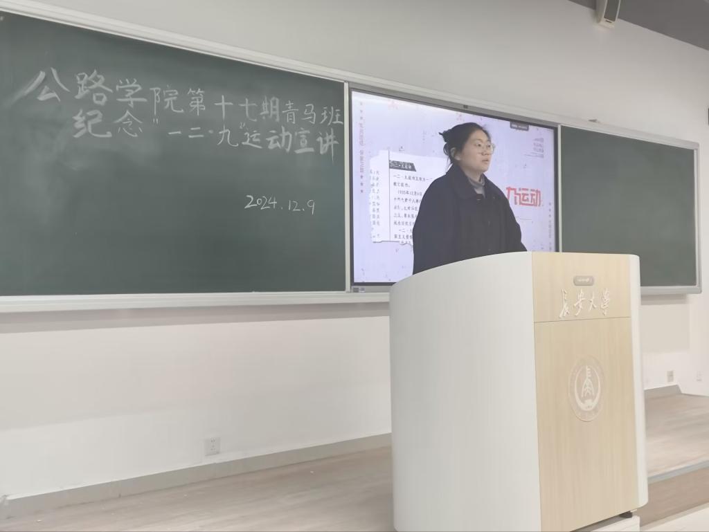 第十七期青马班纪念“一二·九”运动主题宣讲。2024级本科生辅导员何子毅以及青马班全体同学参加了此次宣讲。