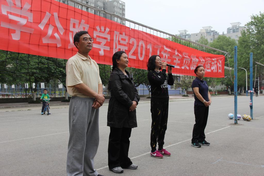 为全面落实《全民健身计划2016-2020》,以形成健康的工作生活方式为重点,以增强全院教职工的身心健康为核心,推崇“运动是良医”的健身理念,为学院全体教职工在争创“双一流”大学进程中奠定良好的体质和愉悦的心态,全面推进学院健康运动的深入开展,增强教职工的身体素质和凝聚力,在院党委领导下,院工会组织全院200多名教职工于2017年4月15日在校本部体育场开展全员健身运动日活动,校工会主席简林莎教授出席开幕式并讲话。